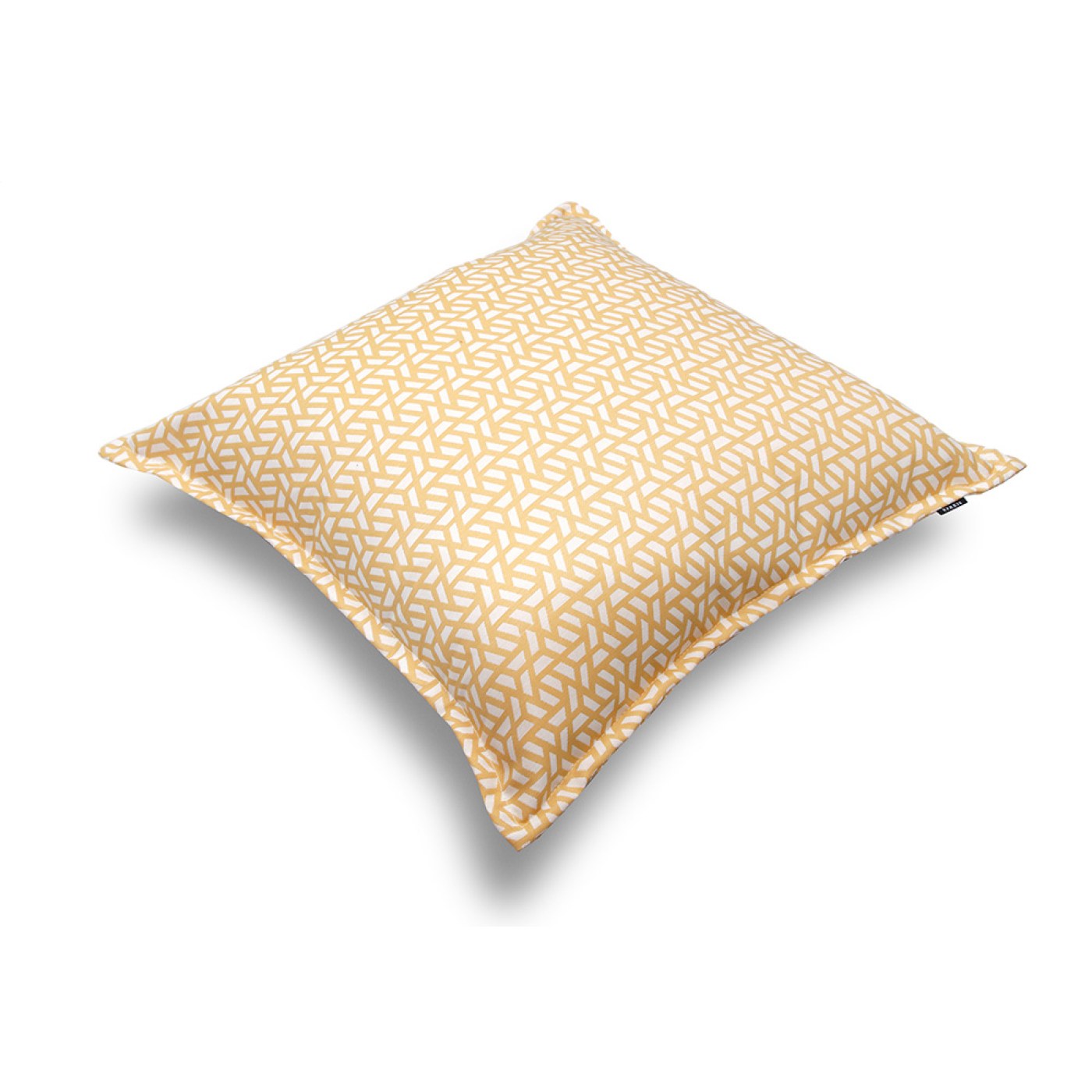 Μαξιλάρα δαπέδου με σχέδια κίτρινα τύπου φάκελος με διακοσμητική περιμετρική πατούρα και επενδυμένη με ύφασμα ύφασμα.