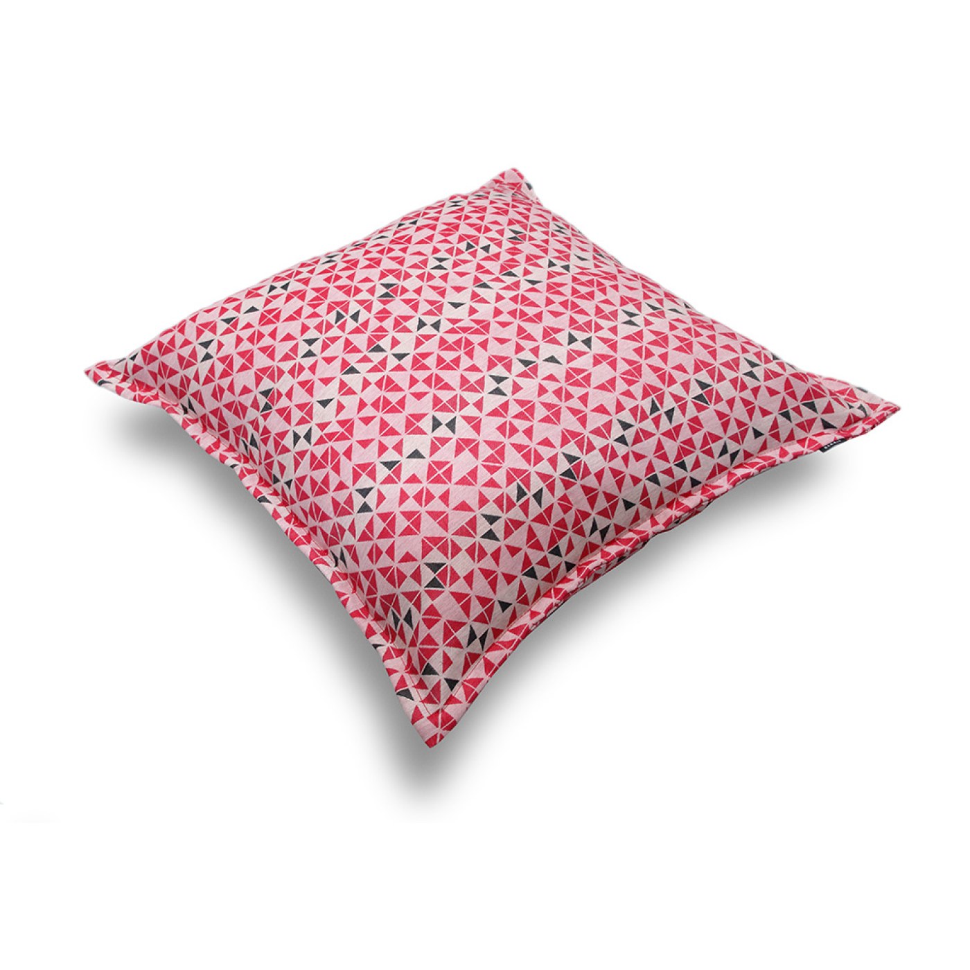 Μαξιλάρα δαπέδου με ροζ γεωμετρικά σχέδια Ζακάρ τύπου φάκελος με διακοσμητική περιμετρική πατούρα και επενδυμένο με ύφασμα Ζακάρ, εξαιρετικής ποιότητας για αντοχή στο χρόνο.