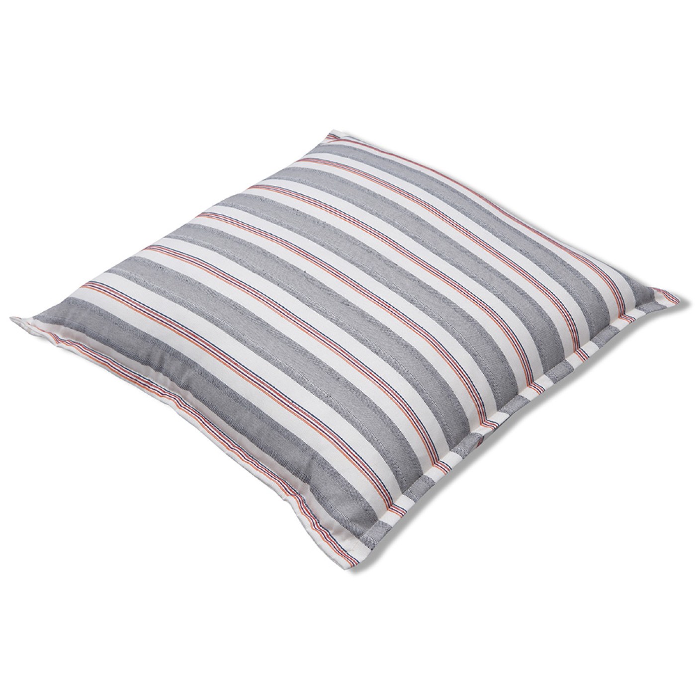 Μαξιλάρα δαπέδου με γκρι ρίγες, τύπου φάκελος με διακοσμητική περιμετρική πατούρα και επενδυμένο με ύφασμα Ζακάρ, εξαιρετικής ποιότητας για αντοχή στο χρόνο.