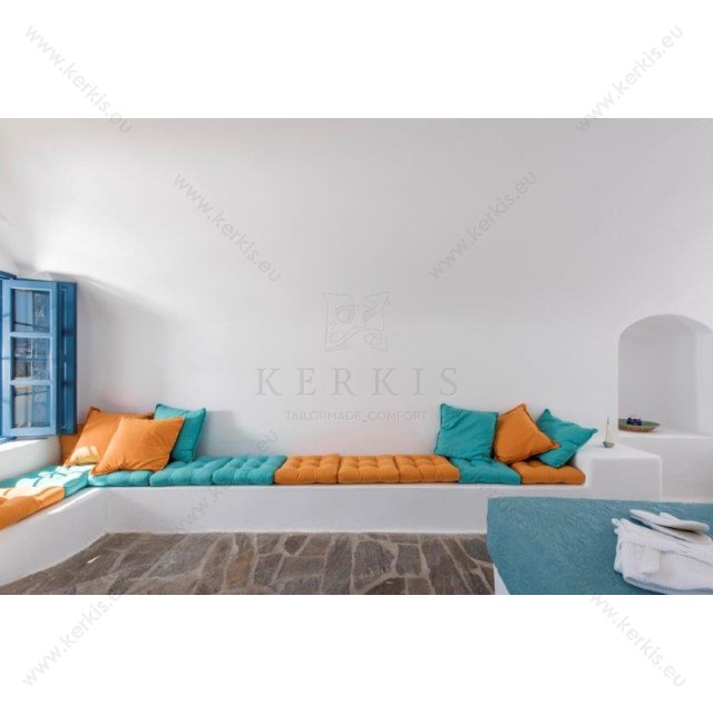 Οι μαξιλάρες δαπέδου είναι ιδανικές και για παγκάκια, όπως και για πέτρινες ή τσιμεντένιες πεζούλες - παγκάδες